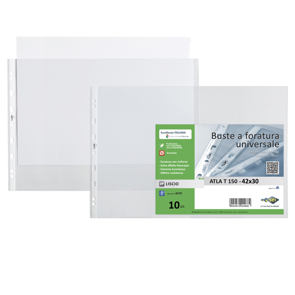10 buste forate atla t 150 42x30cm liscio a3 album sei rota
