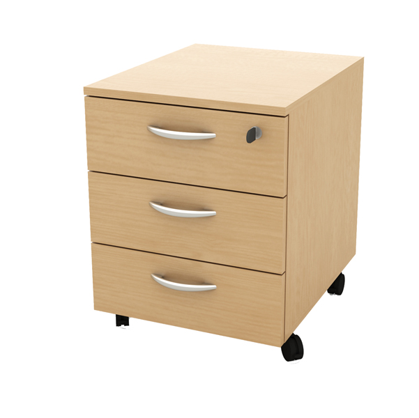 Cassettiera a 3 cassetti su ruote. Serratura sul primo cassetto, guide metalliche. Dimensioni utili dei cassetti: L31,8 x P38,3 x H10,9cm. Dimensione totale: L41 x P50 x H52,2cm. Colore struttura e dei cassetti: faggio. Fornita in kit DA ASSEMBLARE.