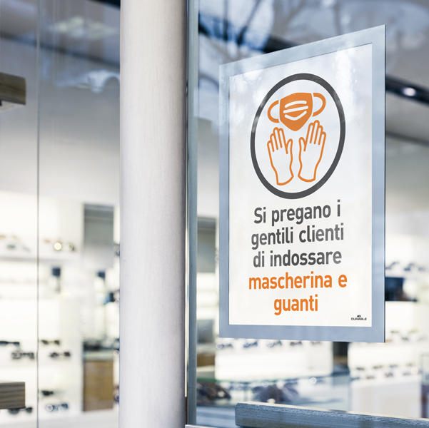 DURAFRAME SUN la cornice espositiva per le superfici vetrate esposte alla luce diretta del sole ideale per esporre pubblicit e/o informazioni.