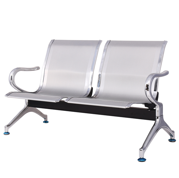 Panca per sala d’attesa in acciaio microforato con trattamento antiruggine e verniciatura elettrostatica. Spessore lamiera 1,5mm. Profili, gambe e braccioli in acciaio cromato.