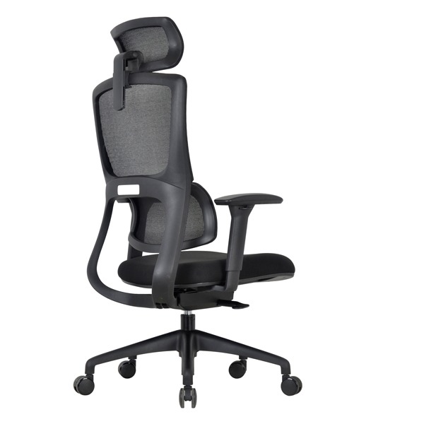 Seduta per utilizzo intenso con traslatore del sedile, elevatore a gas, movimento synchro e regolazione dello schienale. Braccioli 3D, poggiatesta con inclinazione regolabile, supporto lombare integrato e seduta in schiumato indeformabile traspirante.