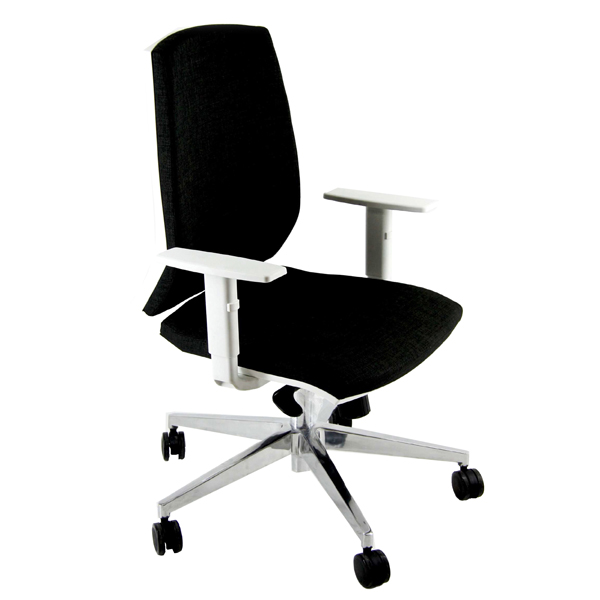 Poltrona semidirezionale girevole con elevazione a gas meccanismo synchro con 4 blocchi anti shock – meccanismo a contatto permanente -schienale regolabile up-down – supporto lombare regolabile. Rivestimento seduta in tessuto PLUS – Ignifugo standard in fibra modacrilica e reazione al fuoco classe 1. Completa di braccioli regolabili. Alt.tot.: 102-113cm Prof.tot.: 68cm Alt.schienale: 52cm Larg.schienale: 45cm Larg.seduta: 47cm Prof.Sedile: 47cm Alt. sedile: 44-55cm.