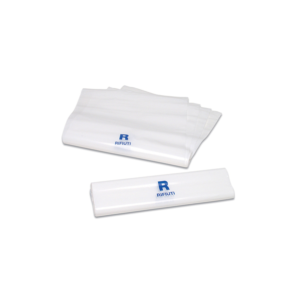sacchetto per rifiuti sanitari con chiusura minigrip e stampa R Rifiuti. Formato 18x25cm.