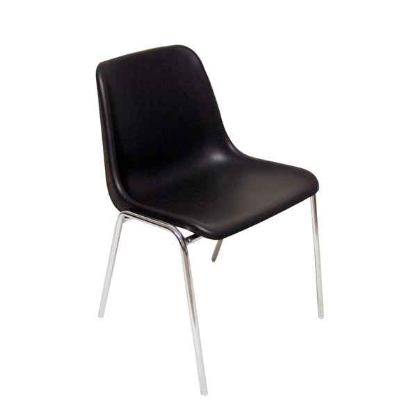 Seduta visitatore impilabile monoscocca in acciaio cromato e ppl. Senza braccioli.