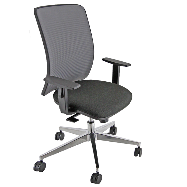 Seduta operativa girevole con elevazione a gas meccanismo synchro con 4 blocchi anti shock meccanismo a contatto permanente – supporto lombare regolabile – base alluminio – rivestimento schienale in tessuto con gel interposto. Rivestimento seduta in tessuto PLUS – Ignifugo standard in fibra modacrilica e reazione al fuoco classe 1. Completa di braccioli regolabili. Alt.tot.: 98-109cm Prof.tot.: 68cm Alt.schienale: 62cm Larg.schienale: 45cm Larg.seduta: 51cm Prof.Sedile: 46cm Alt. sedile: 42-54cm.