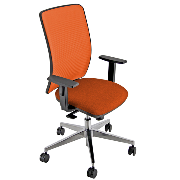 Seduta operativa girevole con elevazione a gas meccanismo synchro con 4 blocchi anti shock meccanismo a contatto permanente – supporto lombare regolabile – base alluminio – rivestimento schienale in tessuto con gel interposto. Rivestimento seduta in tessuto SUPER – King L 100% TREVIRA e reazione al fuoco classe 1. Completa di braccioli regolabili. Alt.tot.: 98-109cm Prof.tot.: 68cm Alt.schienale: 62cm Larg.schienale: 45cm Larg.seduta: 51cm Prof.Sedile: 46cm Alt. sedile: 42-54cm.