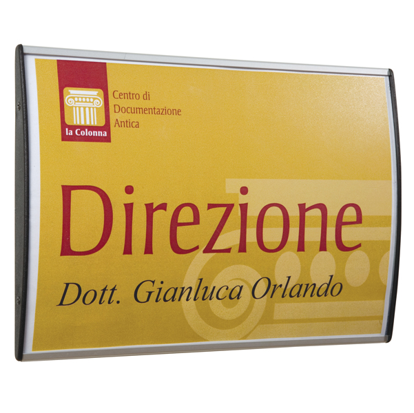Elegante design dalla forma convessa. Realizzato in alluminio estruso e corredato di appositi terminali di chiusura in materiale plastico nero. protezione in pvc antiriflesso. Puo’ essere utilizzato sia in verticale che orizzontale. Infinite le combinazioni possibili. La grafica e i messaggi da inserire sono realizzati dall’utente stesso in carta o cartoncino, mediante l’uso del pc, in totale autonomia. Si ottengono in questo modo notevoli risparmi gestionali rispetto ai sistemi segnaletici usati fino a ora