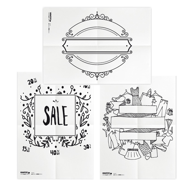 SET STENCIL a tema SCONTI / OFFERTE, ideali per decorare le vetrine. Su fogli in carta dimensione A2.