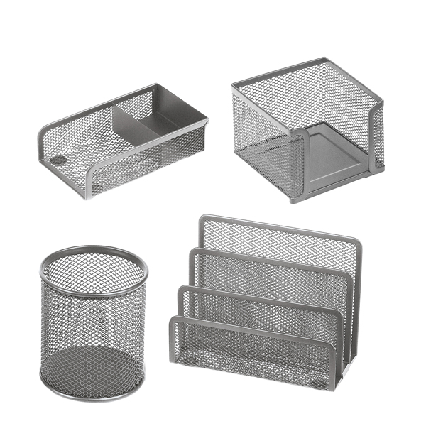 set scrivania 4 accessori in rete metallica argento 1424 lebez