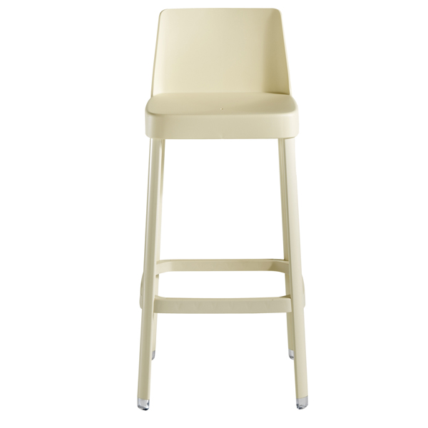 Sgabello alto 100% polipropilene – struttura in acciaio tubolare sezione ovale – senza braccioli. Alt. tot: 95cm Prof.tot: 43cm Alt.schienale: 22,5cm Largh.schienale: 38cm Largh. sedile: 38cm Prof.sedile: 37cm Alt.sedile: 75cm.