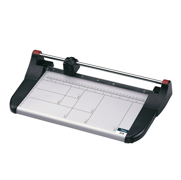 Taglierina con base in metallo, millimetrata in serigrafia. Gruppo lama intercambiabile disponibile come ricambio.