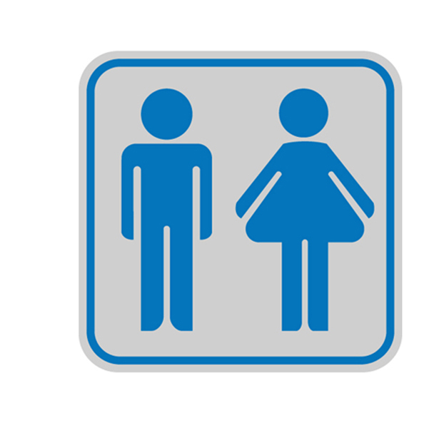 targhetta adesiva 82x82mm con pittogramma toilette uomo/donna