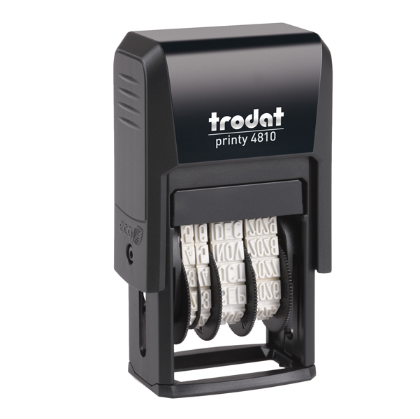 Ideale per datare i tuoi documenti! La data ha un’altezza di 3.8 mm ed nel seguente formato: giorno, mese (in lettere) e anno. La dimensione dell’impronta di 20 x 3.8 mm. Il mini datario Trodat 4810 un piccolo e pratico timbro auto-inchiostrante, ideale per un utilizzo occasionale a casa o in ufficio. Eco-compatibile, prodotto con il 70% di plastica riciclata. Il 4810 disponibile con un tampone ad inchiostro nero di serie per consentire migliaia di impronte sempre chiare e pulite.